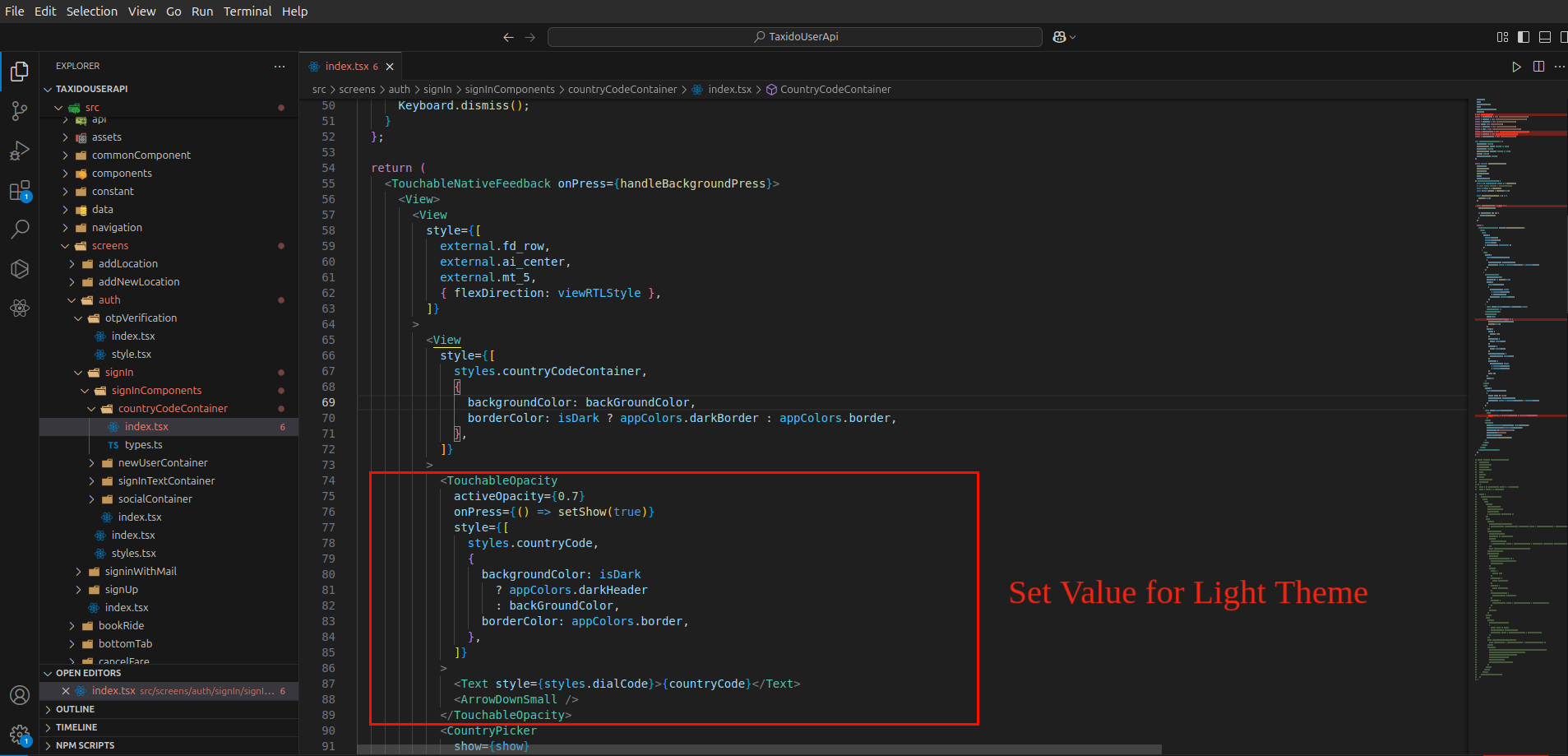 {% hint style="info" %} <i class="fa-bullhorn">:bullhorn:</i> NOTE : Remeber if you change color in any any color for light or dark where the color that color is used it will change. If in some place you don't want to keep that color after change with your color then add new color in app\_theme.tsx