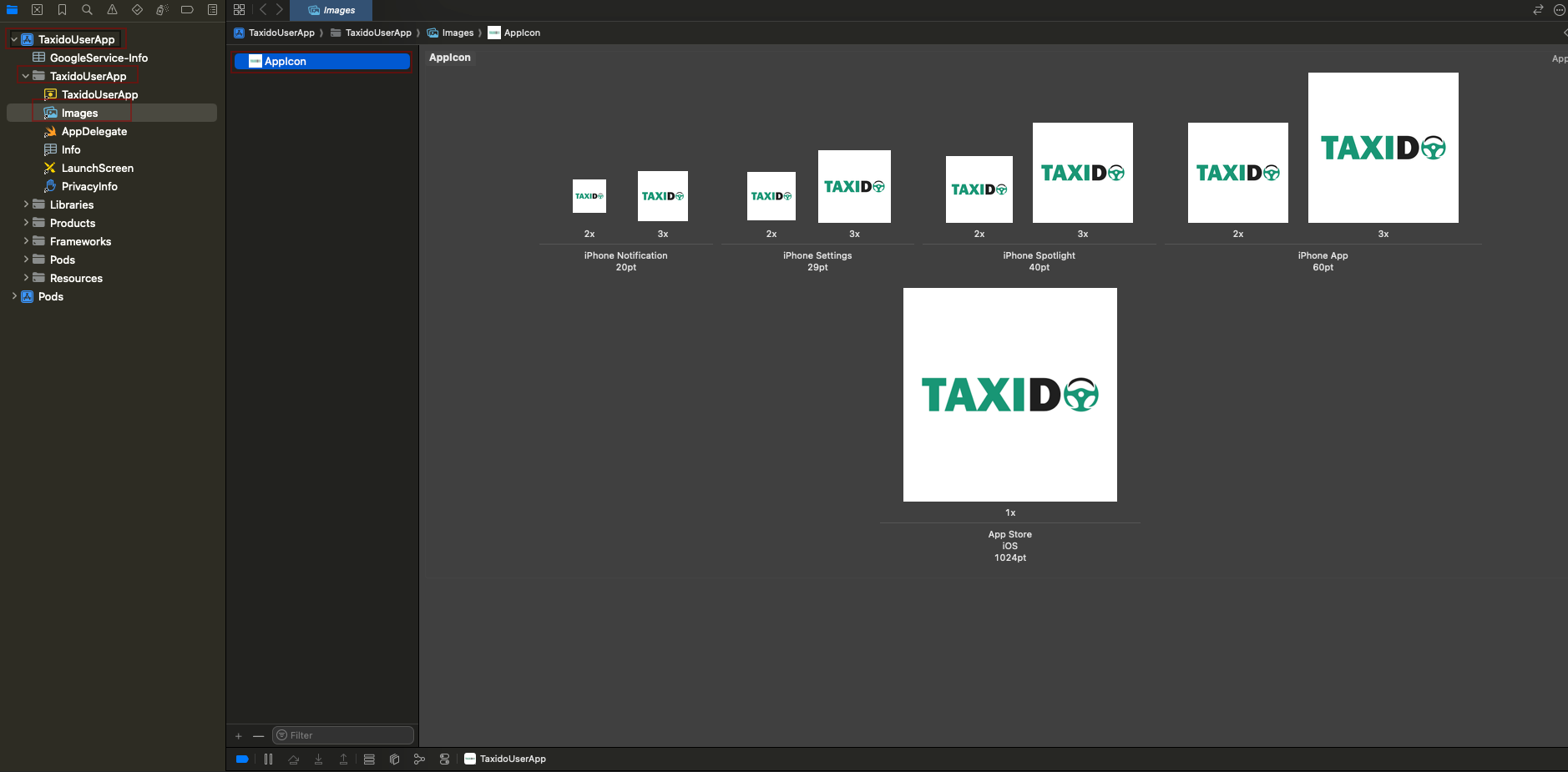 2. Open your project like this: TaxidoUser → Taxidouserapp → image → App icon.<br>