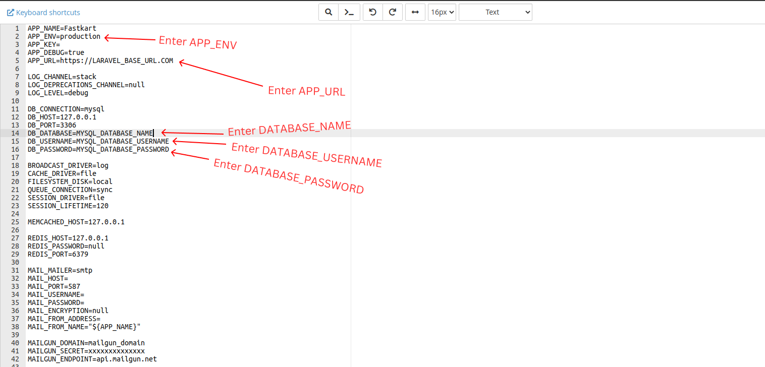 Enter the essential MySQL database credentials to connect the Laravel API to the MySQL database such as a database host, username, password, and database name.