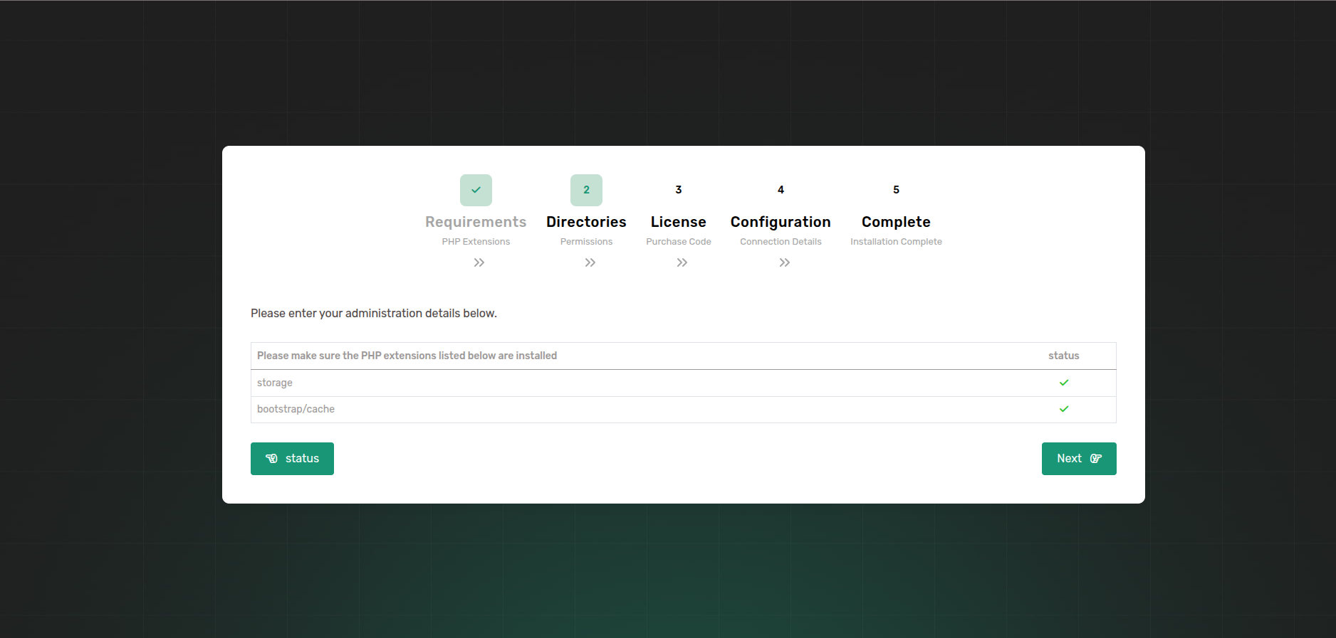 Step 2: Once all the required PHP extensions are installed, proceed to the next step to check permissions for specific folders to ensure they are allowed.