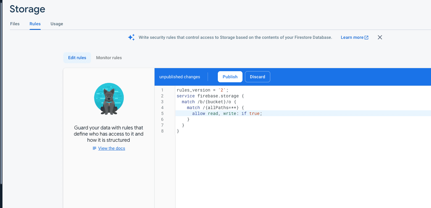 For save data in Firebase storage and upload file,images,videos etc need to give permission
