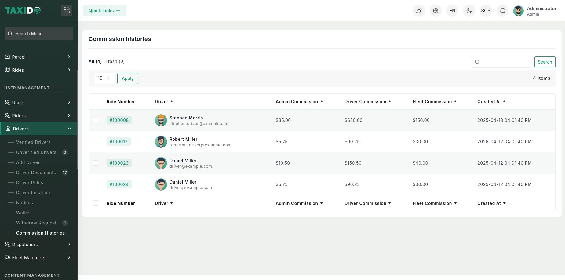 &#x20;     *This section ensures full transparency of commission distribution per ride.*