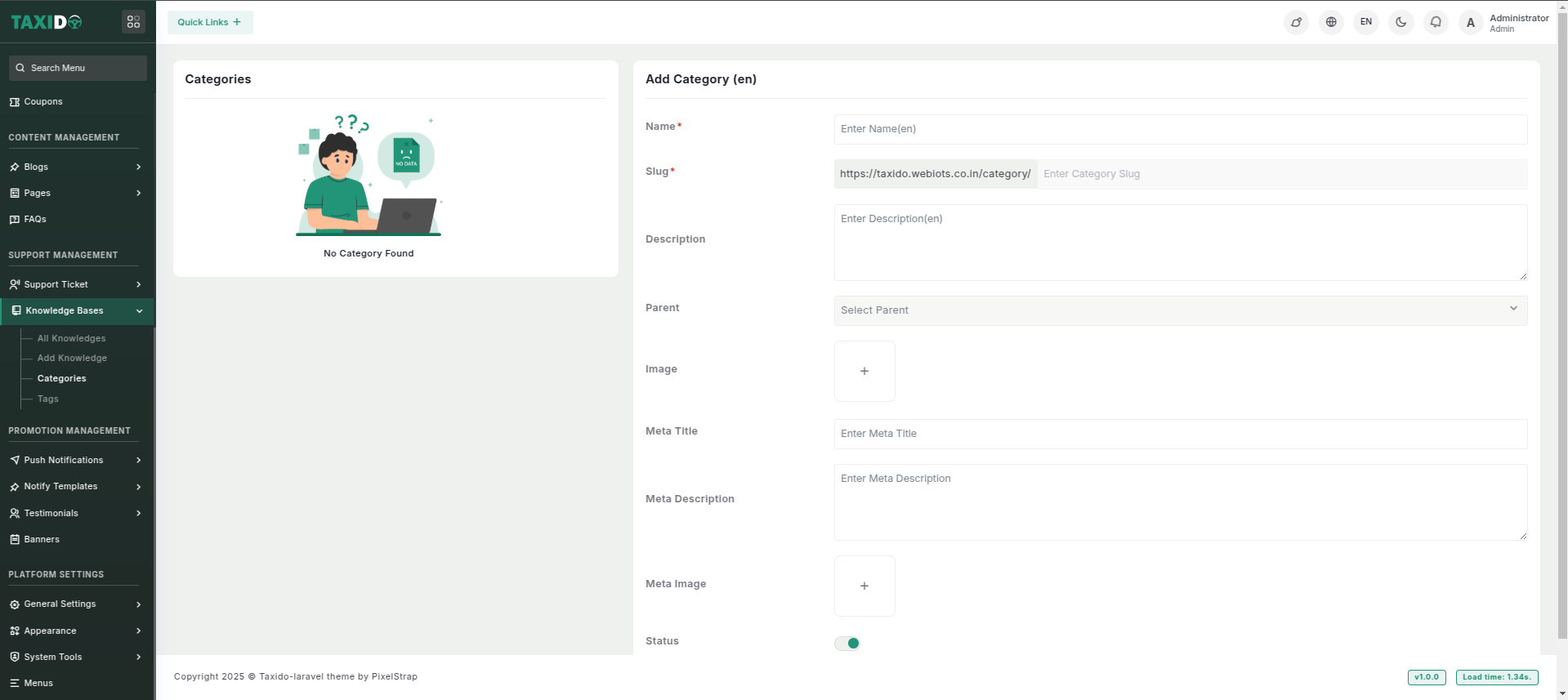 2. Click on the "Categories" and fill out the details, which may include:
