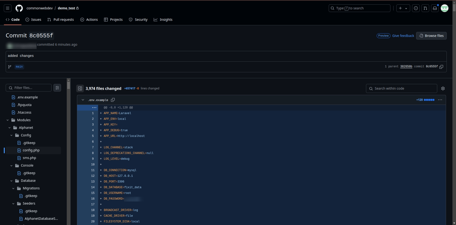 15. Now click on **Changes** for check total number for file changes and which files has been changed.